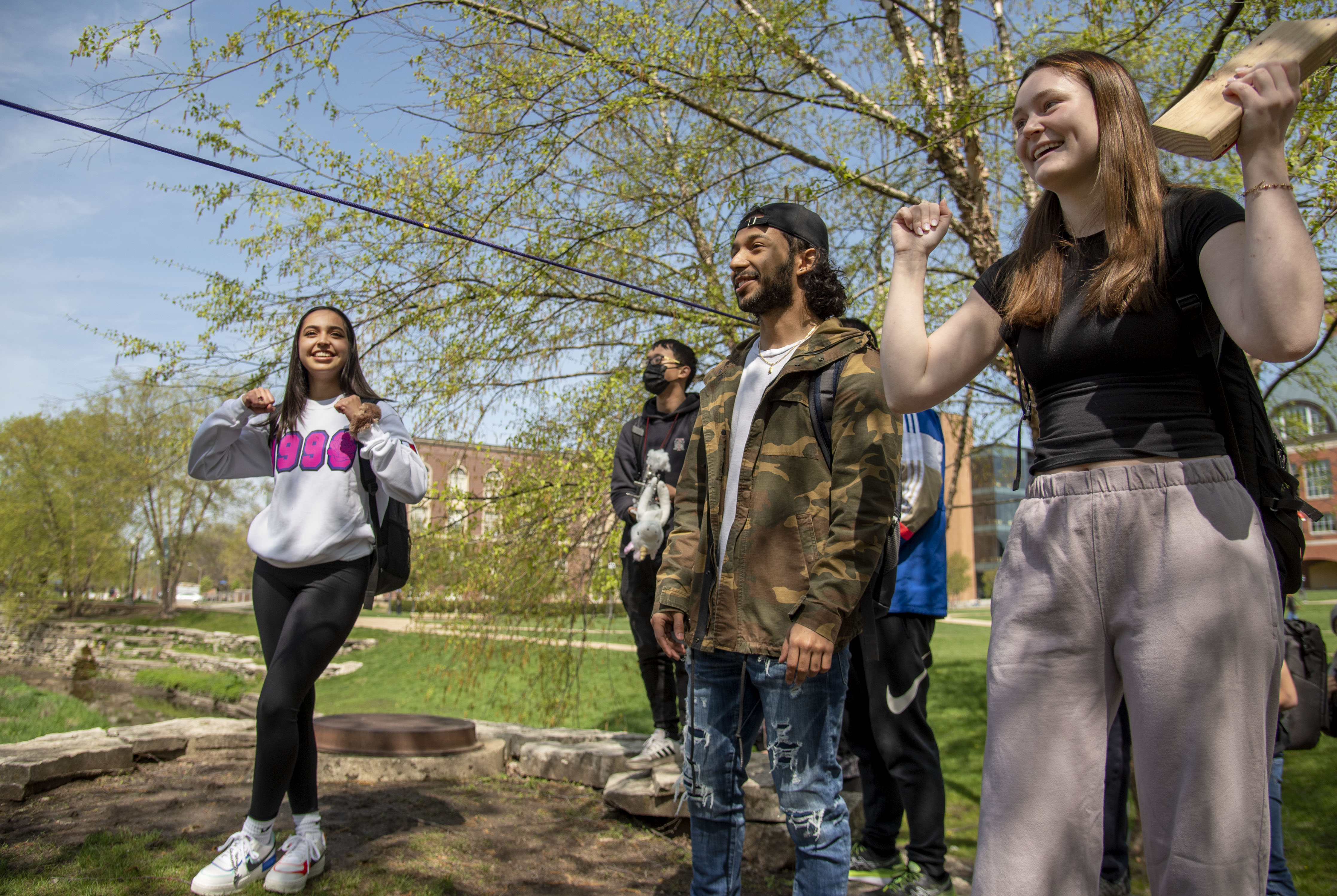 Undergraduate students in Mechanical Design I (ME370) brought their "cable walkers" to life as they raced them across Boneyard Creek on Bardeen Quad on May 2.