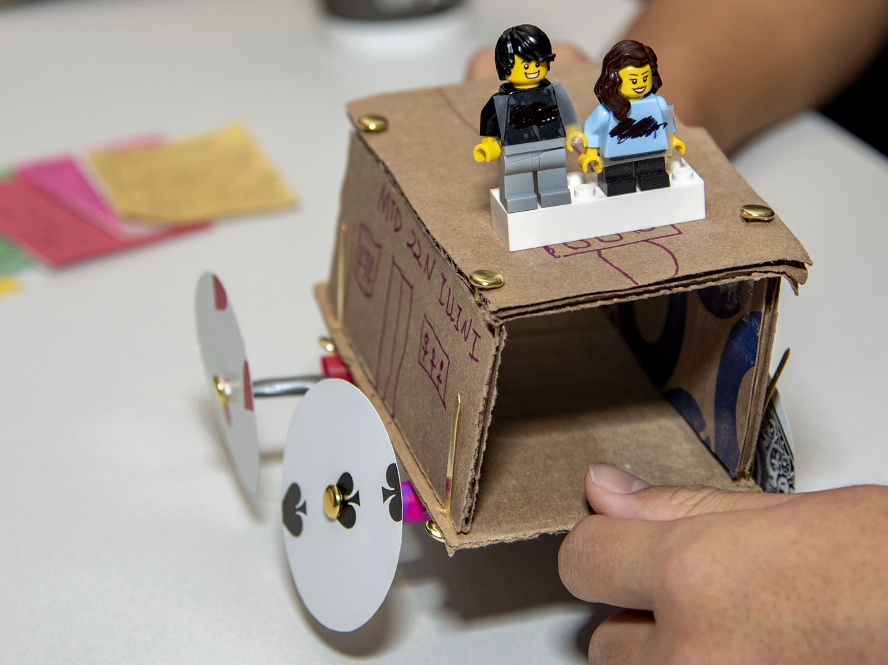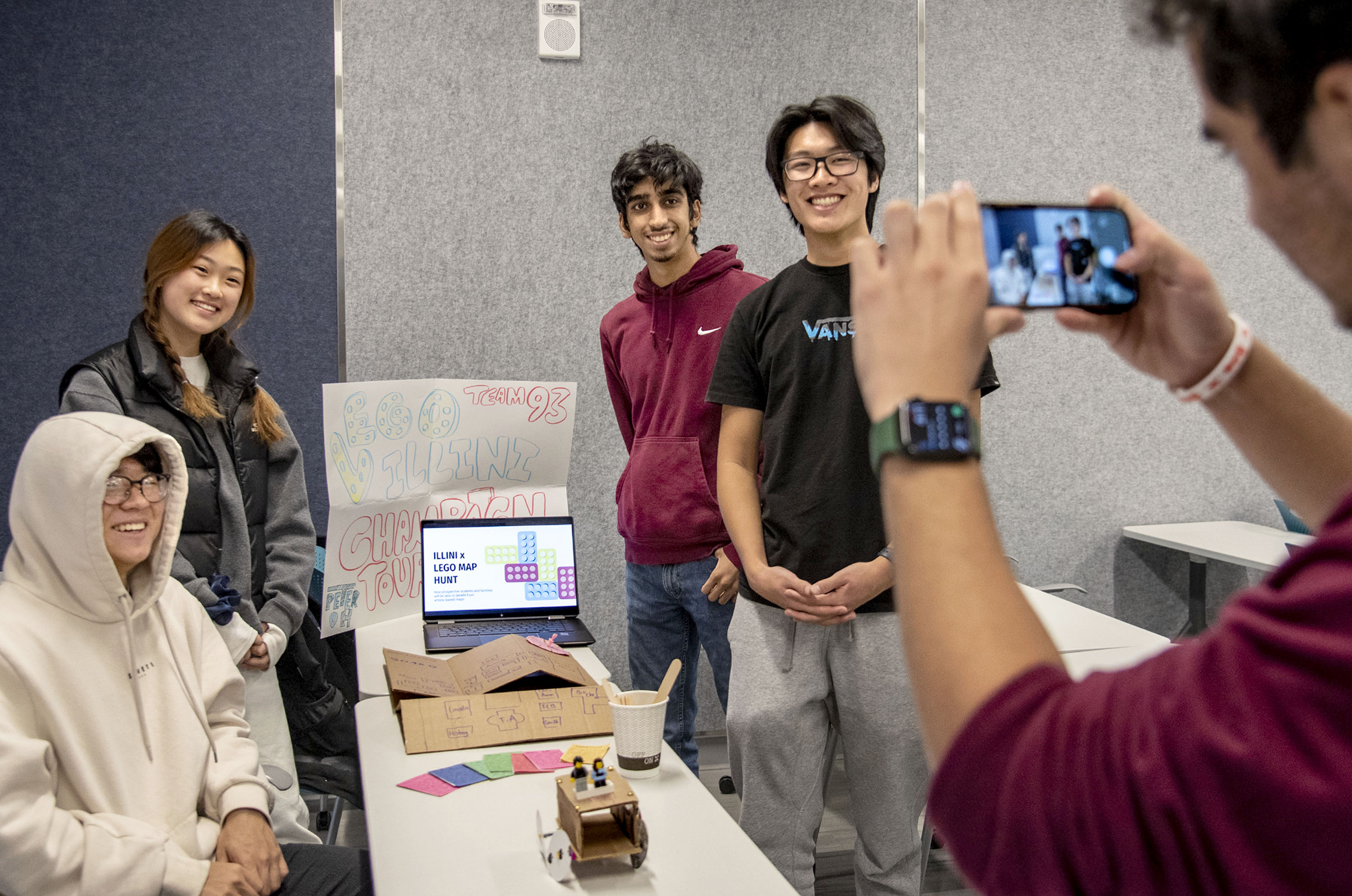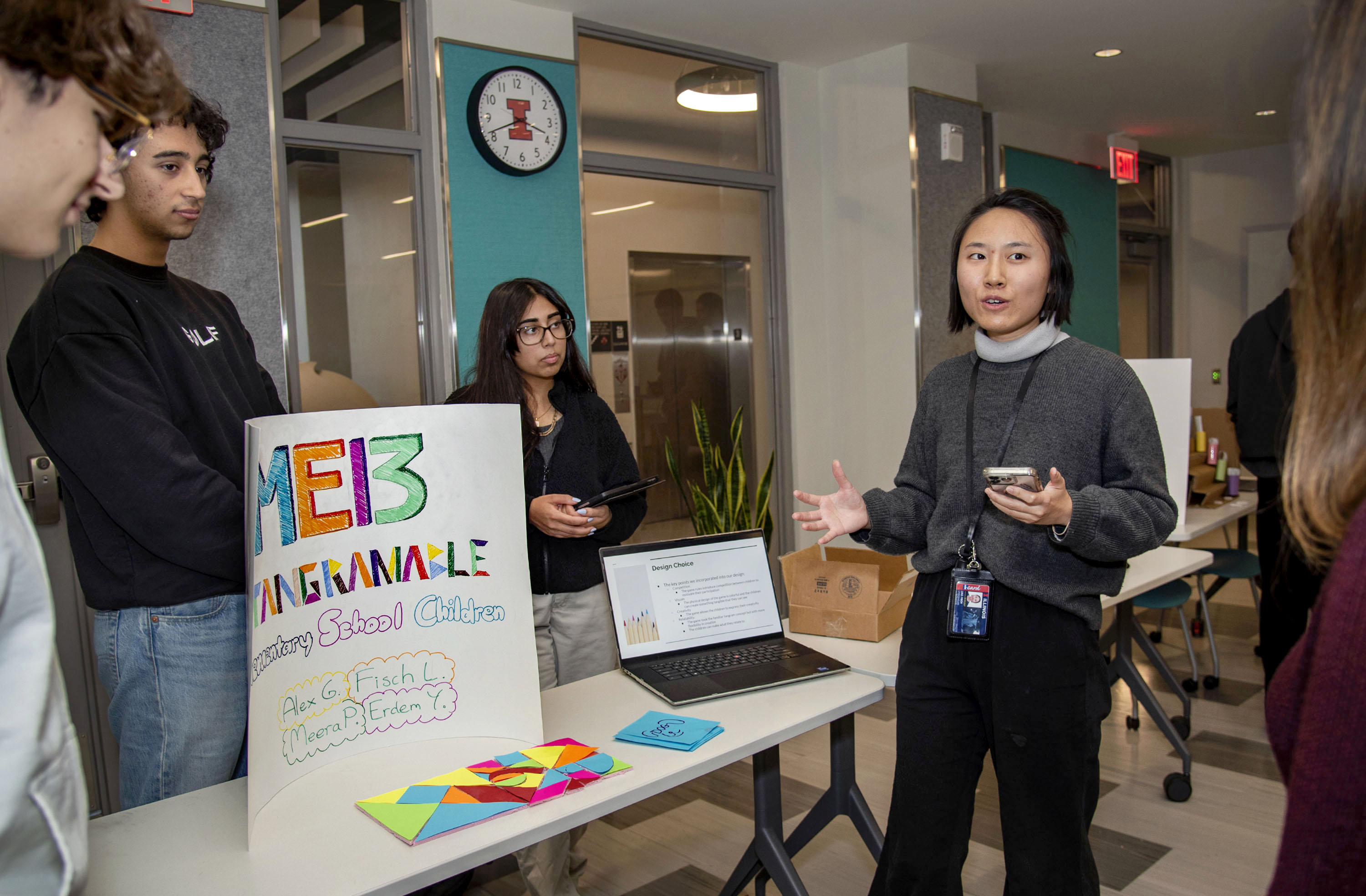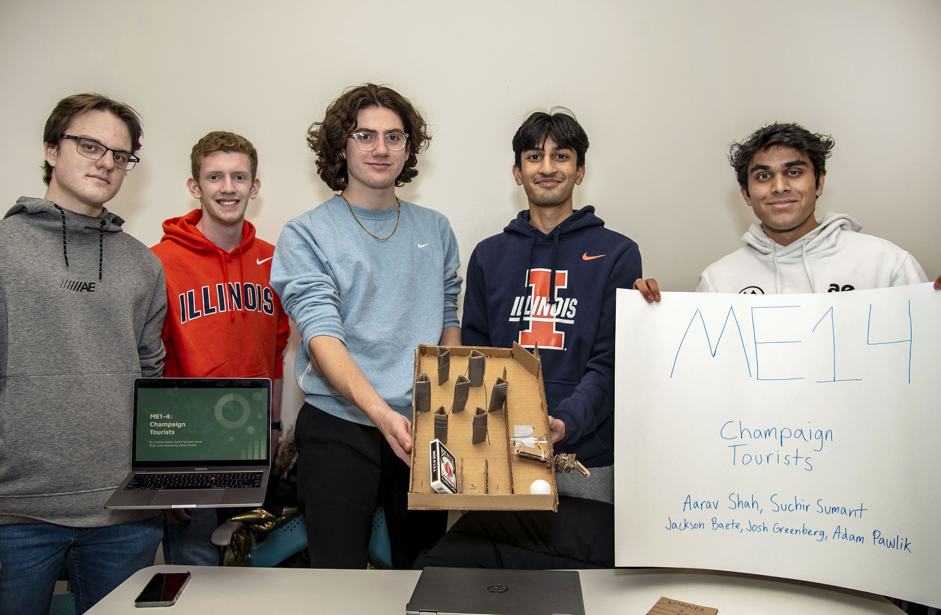Each year, as part of the ENG 100 course, mechanical engineering and engineering mechanics first-year students completed a human-centered design project. This year, the project entailed building a low-fidelity prototype of a recreational machine that would cater to one of the following five target groups: athletes; the elderly; visitors to Champaign, Illinois; the physically disabled; and elementary school students. The teams presented their prototypes yesterday at the ENG 100 EXPO, held at Lu MEB.