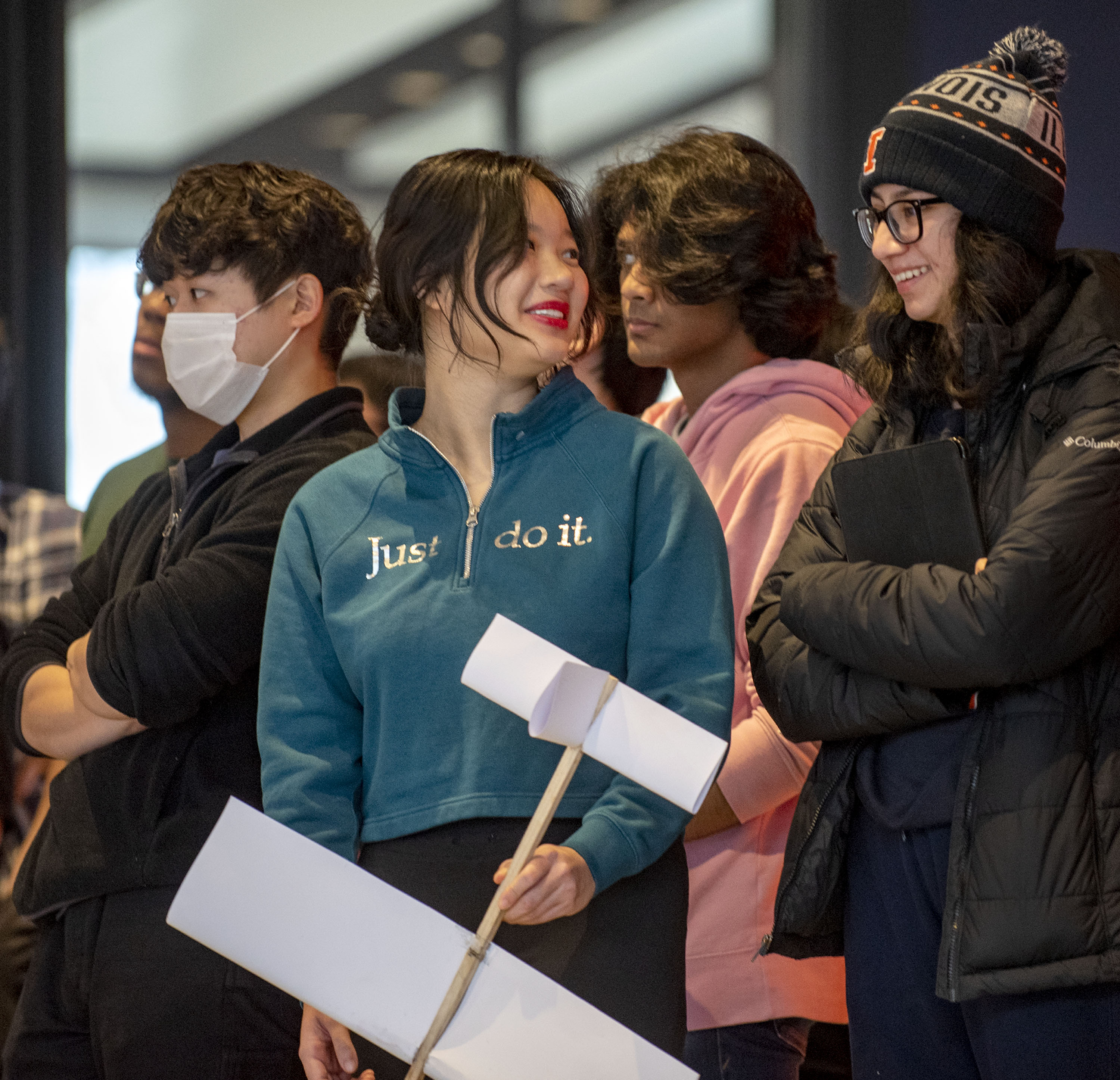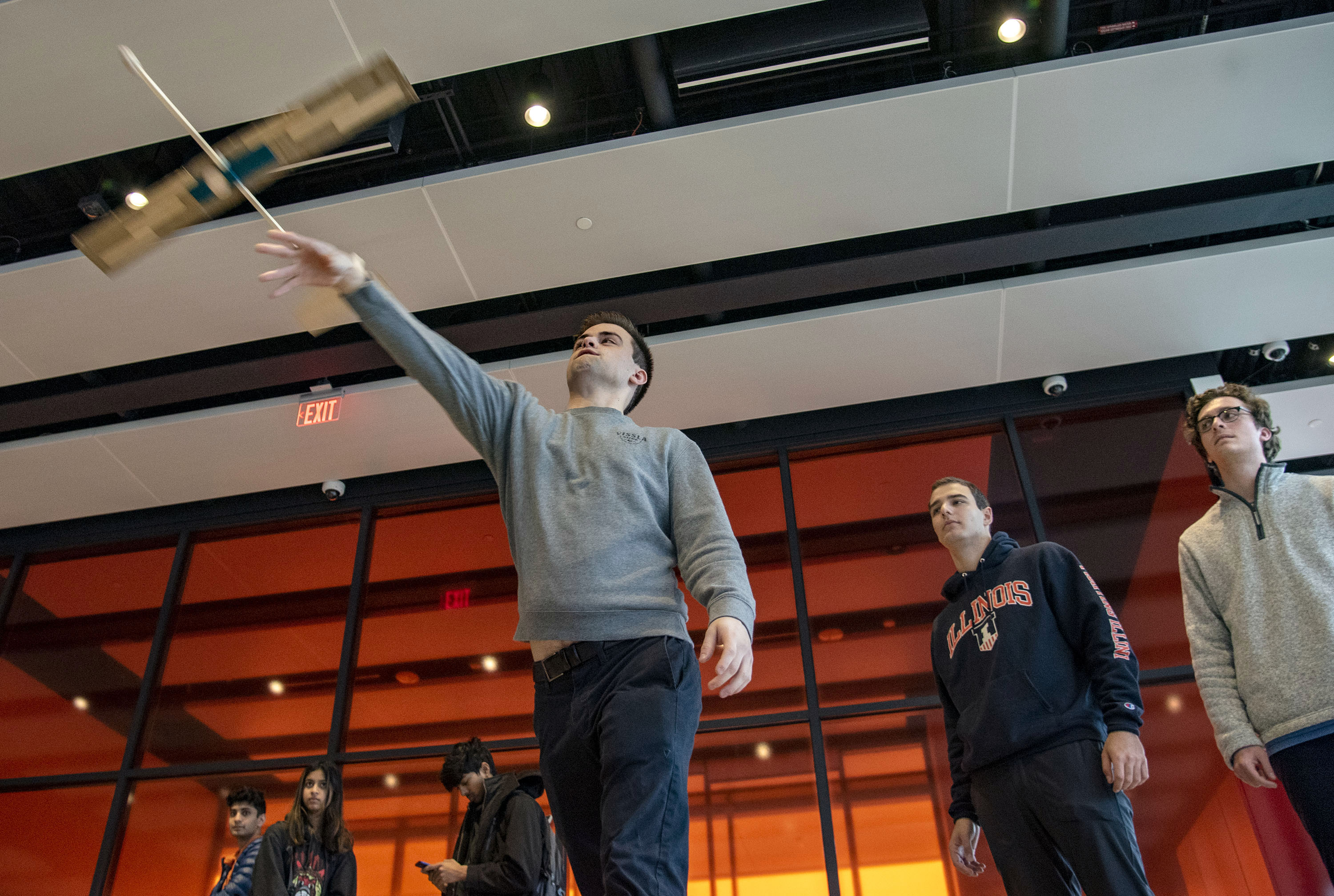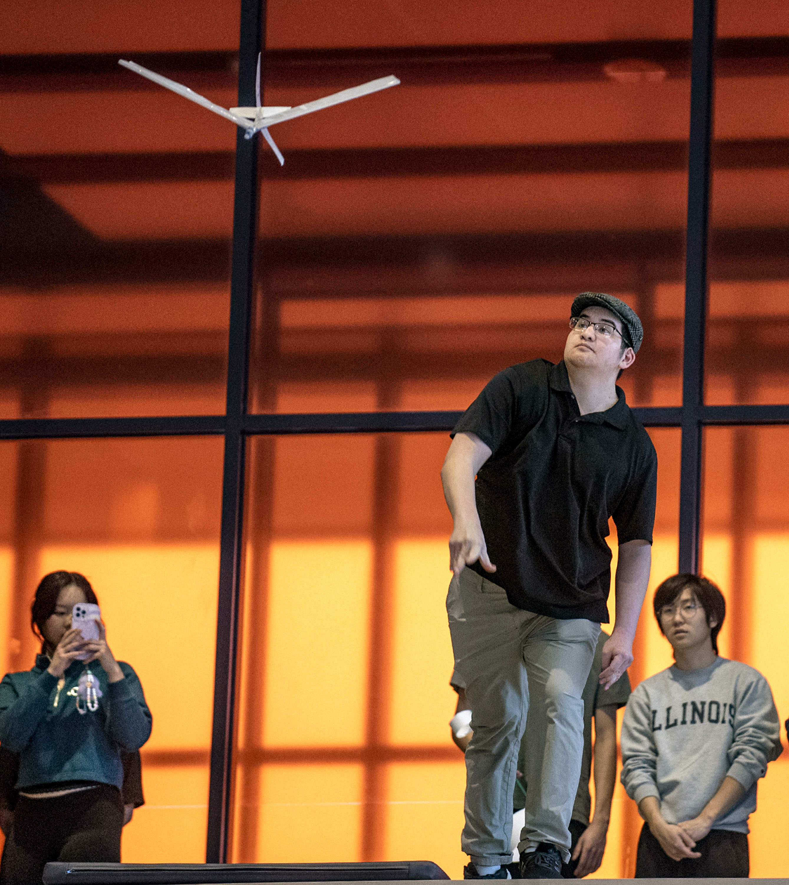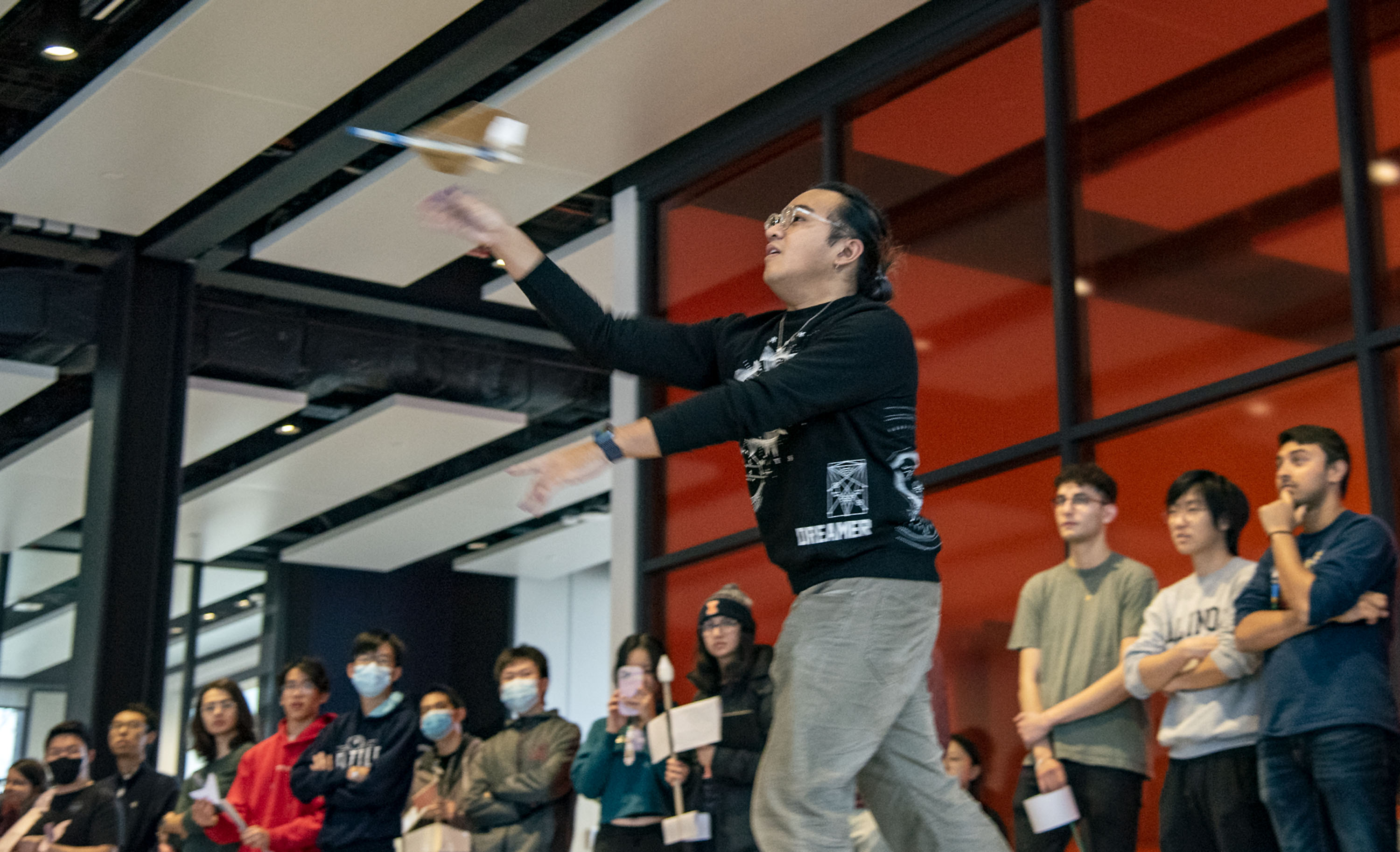 Teams had to design a glider that would advance 21 meters while descending 8 meters to hit a 1-meter-diameter target. They had a $0 budget and had to make use of found or recycled material where possible. A class competition showcasing these low-fidelity prototypes was staged at the Monumental Steps in the Campus Instructional Facility. Each team had two opportunities to show what their gliders could do.