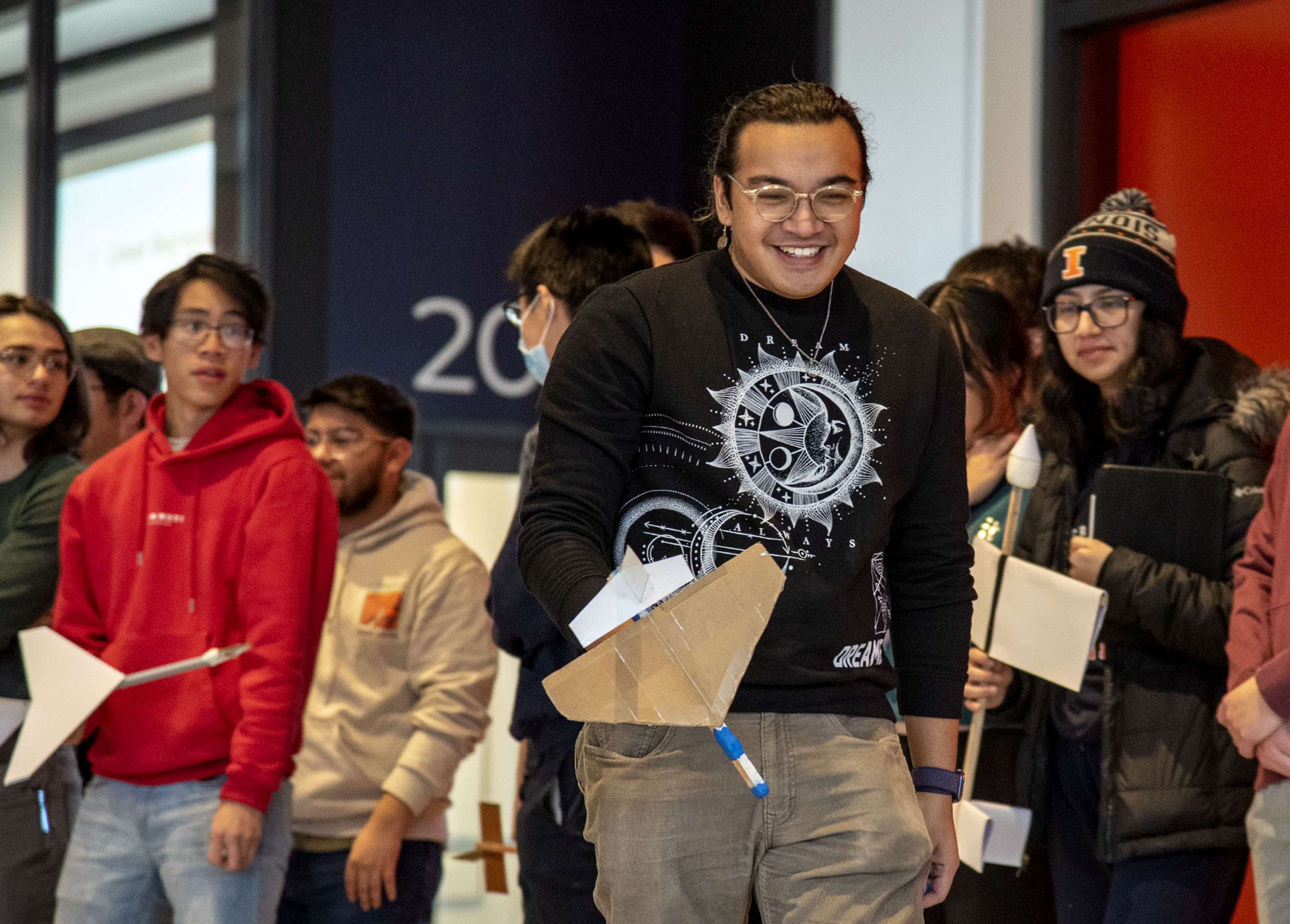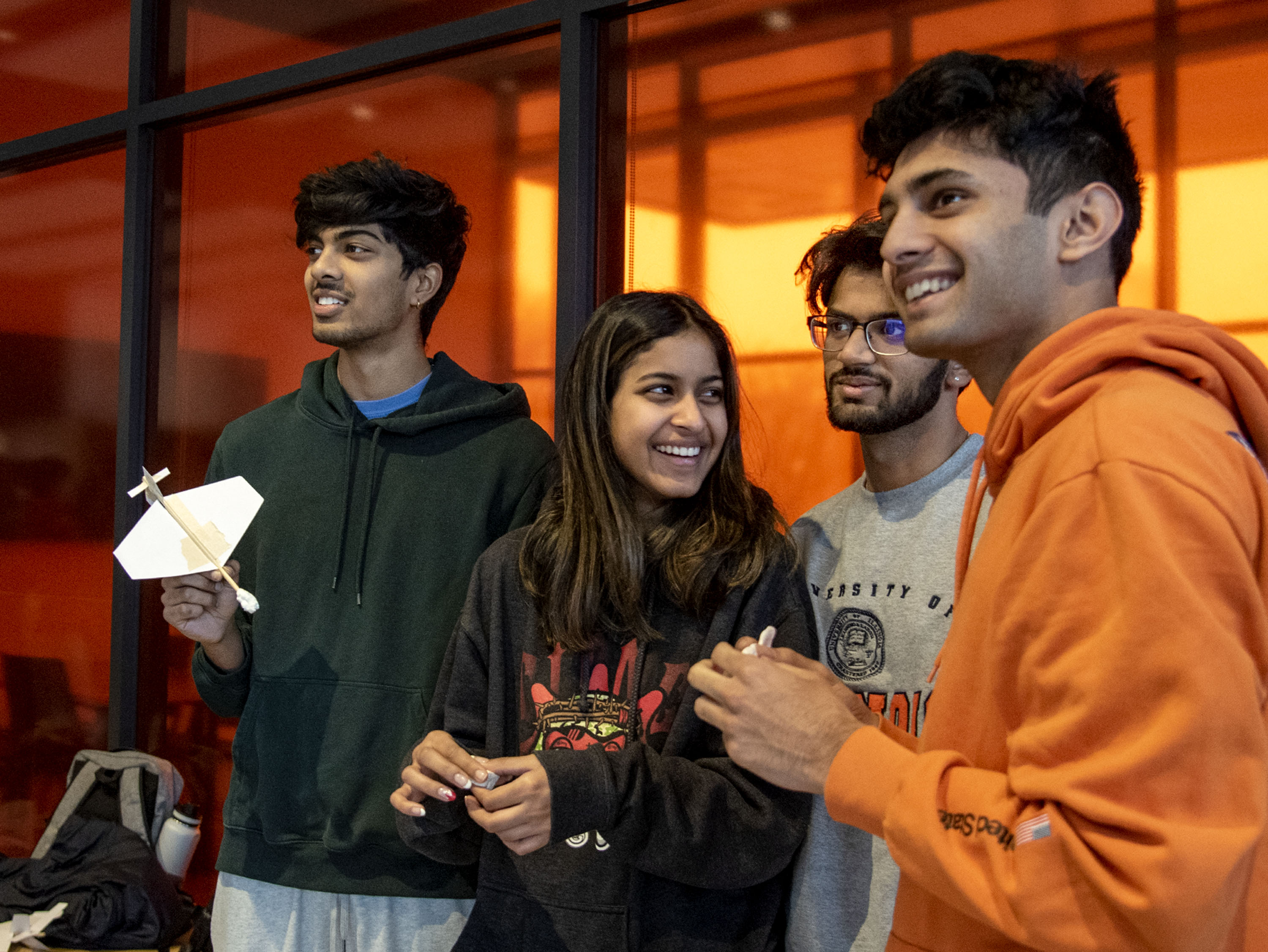 The winning team members said, “The most enjoyable moments came in the Siebel Center for Design when we had to carefully construct the skeleton of our wing out of laser cut airfoils and strips of cardboard. The process was long and tedious but well worth the effort. It was really cool to apply our knowledge of fluid dynamics to this glider build.”