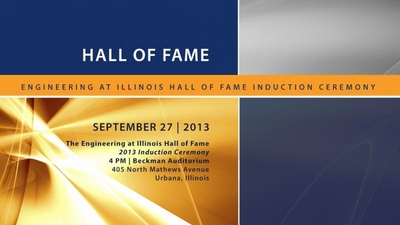 Coming up this Friday is Engineering at Illinois Hall of Fame! Check out the 2013 Inductees at this website. You can catch the induction ceremony on Friday, September 27th, at 4:00 p.m. in the Beckman Auditorium.