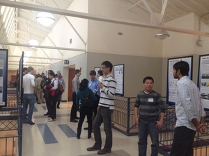 MechSE is home to numerous labs and research centers (for a full list, see this page). Our graduate students are an integral part of faculty laboratories, so they are the perfect resource for learning about research taking place in MechSE! The Graduate Office has hosted its annual poster session since 2011, and it's proved to be a useful event not only for those outside of MechSE but also for our students to learn about projects taking place in other research groups. The John Deere Pavilion in the Mechanical Engineering Laboratory was buzzing with discussion. Our turnout was great, and we had a large number of student presenters! It's so great to see our students presenting their research.