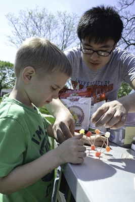 Plus a fifth activity in which Milner and Armstrong had a significant role: a Family Engineering Fair at Booker T. Washington (BTW) STEM Academy on April 23rd. Milner and Armstrong were responsible for planning all of the events for the outreach, as well as helping to recruit volunteers from Illinois. For example, they came up with a number of smaller activities that could be done by a small group of kids or a family. “The idea of these is not to be very overwhelming, just do something that’s quick and fun; to just teach a very simple, basic science concept,” explains Armstrong. These activities were: