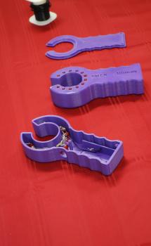 One exhibit on display from BMES was called the “Vein Finder.” As its name suggests, the handheld device was designed to help clinicians find veins in “tough-to-stick” patients (patients whose veins are not as visible under the skin). The vein finder projects light at 620 nm into the skin; this particular wavelength, orange-yellow on the EM spectrum, can penetrate skin and fat layers, but not deoxygenated blood. As a result, the veins appear as dark shadows in the lit skin. Equivalent devices currently available are often bulky and can cost upwards of $500; this handheld prototype cost less than $50 to manufacture using skin-safe PLA (polylactide, a biodegradable thermoplastic).