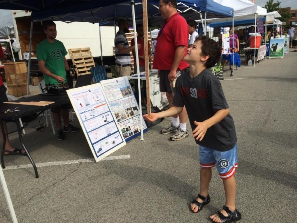 Market-goers of all ages were invited to determine whether a short yardstick would be easier to balance than a long yardstick, to consider the similarities between balancing a yardstick and stabilizing a rocket, and to witness the power of the pendulum-balancing robot's controller.