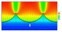 The aforementioned paper is based on joint work with Dr. Francesco Creta, a postdoctoral Fellow under Professor Matalon’s supervision. It describes the ultimate structure that evolves when a planar flame becomes unstable due to the ever-existing background disturbances. In seminal papers, published over 60 years ago, Darrieus and Landau discovered independently that, as a result of the substantial gas expansion that results from the heat released during combustion, a planar flame configuration is unconditionally unstable. The implication at the time was that the instability leads to turbulence. The present results, supported by experimental evidence, show that the hydrodynamic instability leads to large corrugated structures (see figure) that propagate steadily at a speed much larger than the laminar flame speed (the speed of a planar adiabatic flame). Novel aspects of the present study include accounting systematically for the large density variations that are observed in real flames, and identifying, in particular, the role of hydrodynamic strain in sustaining the corrugated structure (the large surface velocity gradients are evident in the figure).