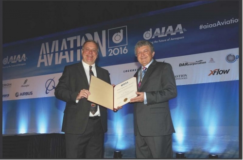 Moshe Matalon, MechSE’s Caterpillar Distinguished Professor, received the 2016 AIAA Fluid Dynamics Award at a ceremony that took place June 14 during the AIAA Aviation and Aeronautics Forum and Exposition (AIAA AVIATION) held in Washington, D.C.