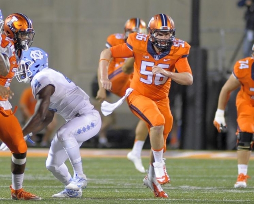 Former Chicago Bears head coach and new Fighting Illini football coach Lovie Smith made a surprise announcement to his team in late August. He announced he was putting walk-on Michael Martin (BSME ’15), the team’s long snapper and a student in MechSE’s Master of Engineering in Mechanical Engineering program, on scholarship for his final season.