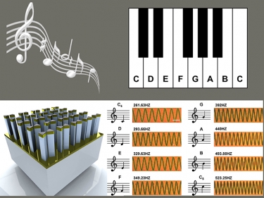 The researchers demonstrated that the pBNAs could be used to store sound information either as a temporally varying intensity waveform or a frequency varying intensity waveform. Eight basic musical notes, including middle C, D, and E, were stored on a pBNA chip and then retrieved and played back in a desired order to make a tune. Effectively making the pBNA chip a plasmonic musical keyboard or “nano piano,” they used the available notes to play the short song, “Twinkle, Twinkle, Little Star.”