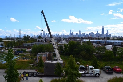 "With a full time management and technical staff, EBI is enthusiastic about incorporating Element House into their operation, including potential use as a 'researcher in residence' facility. It connectsThe Element House was designed and built by a collaborative team of architecture, engineering, and industrial design students to compete in the U.S. Dept. of Energy's 2007 Solar Decathlon competition, held in Washington D.C. on the National Mall. After two years in planning and development, the University's first Solar Decathlon entry finished 9th overall in 2007. Following the competition, The Element House was relocated and reassembled at the Chicago Center for Green Technology (CCGT) in Chicago, where several thousand visitors toured the house when it was featured during a Green Tech conference in 2007.