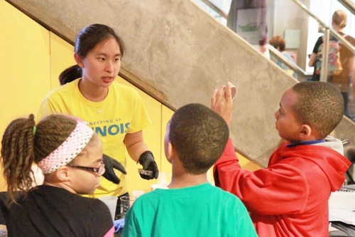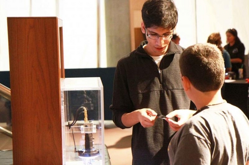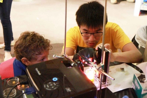 Participants made and took home small LEGO blocks using a homemade rapid prototyping system based on SLA technology. They manufactured small mirrors and saw how they could be used as one-way glass. The PTS students told participants about some of the research going on at the University of Illinois, including research into making flexible electronic devices using silicon.